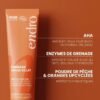 De fines poudres de noyaux de pêche et d’oranges upcyclées lissent la peau et éliminent les cellules mortes en surface.
